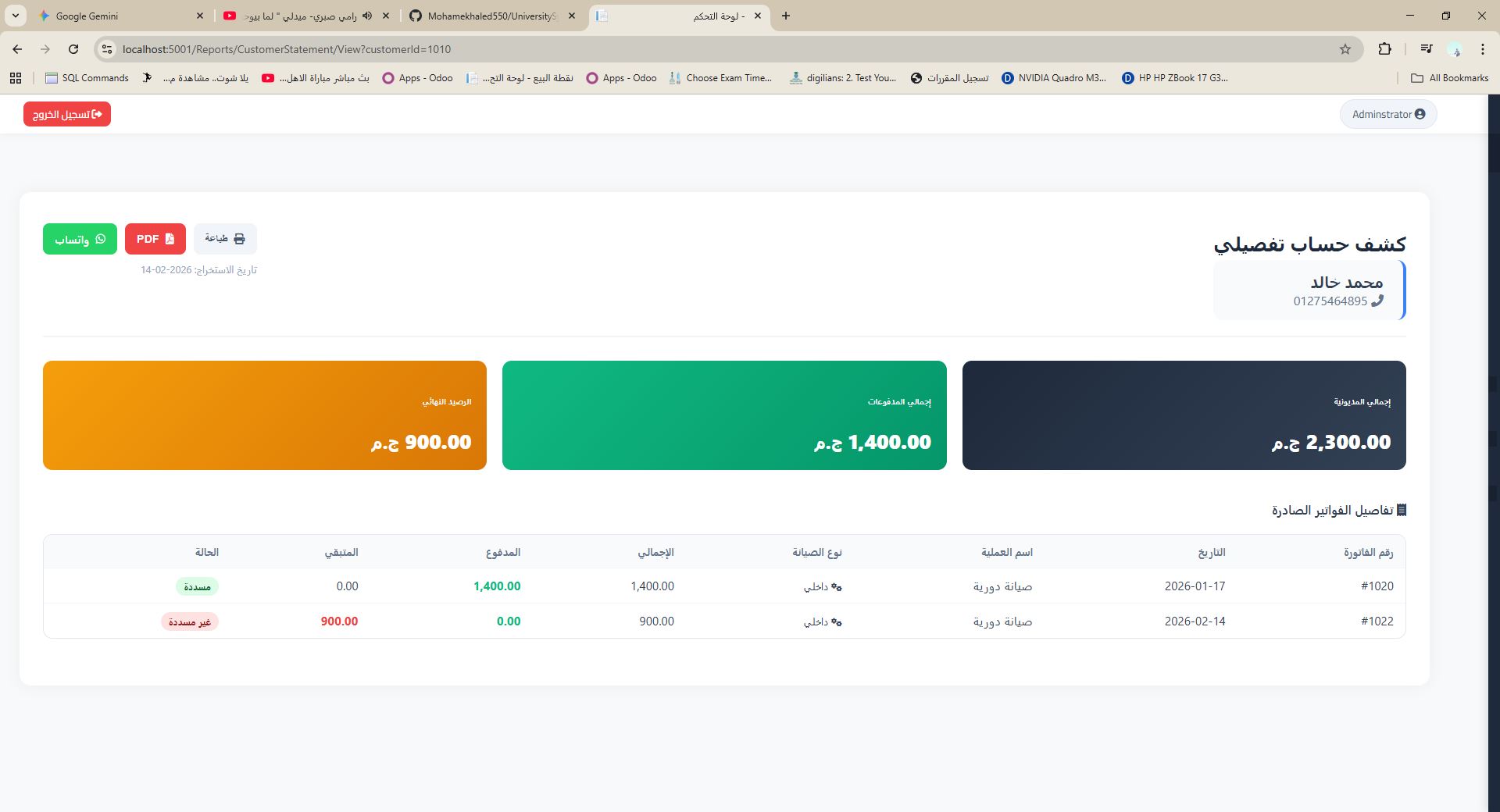 نظام شامل لمراكز قطع الغيار والصيانة لإدارة العملاء والحسابات والفواتير والطباعة والتقارير اليومية بسهولة.