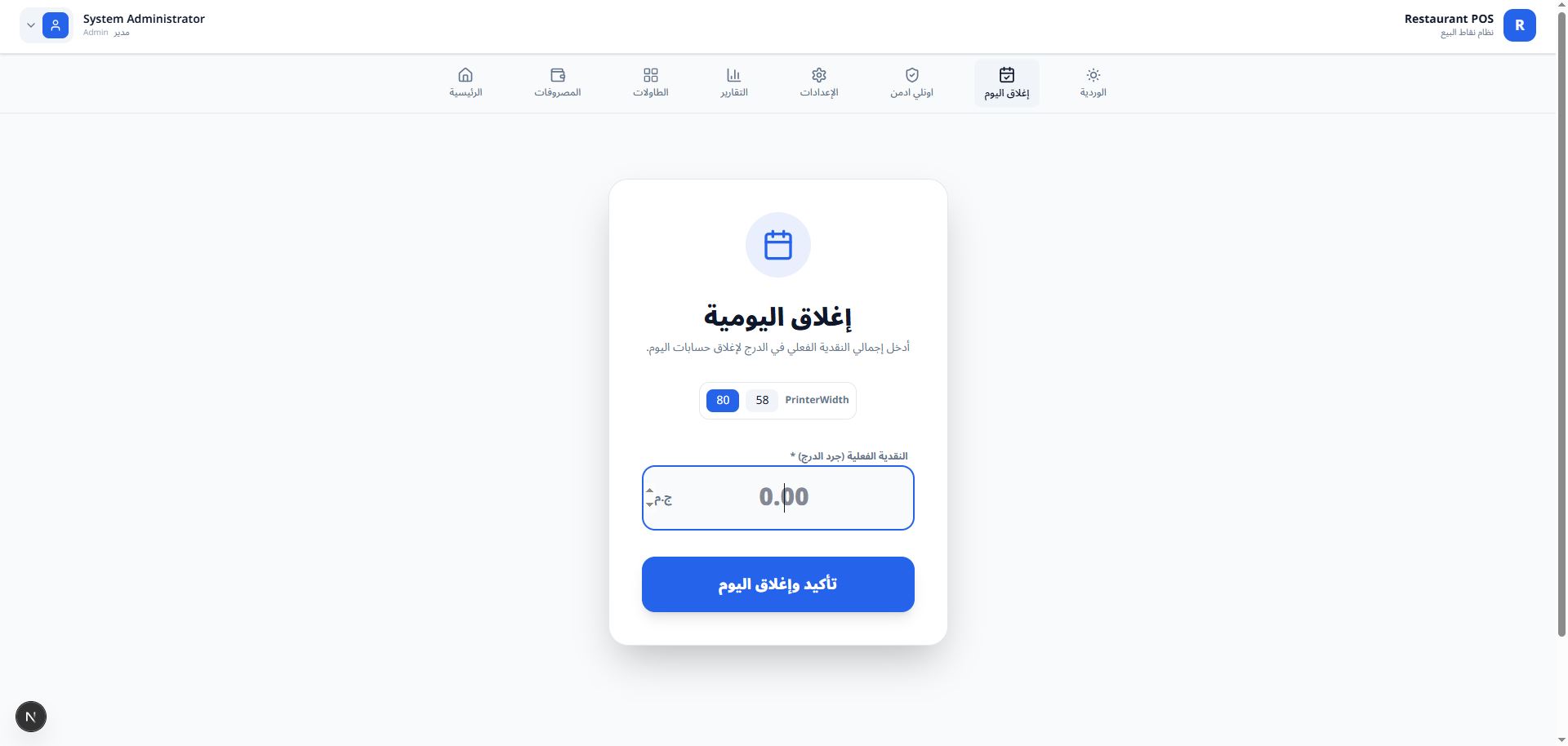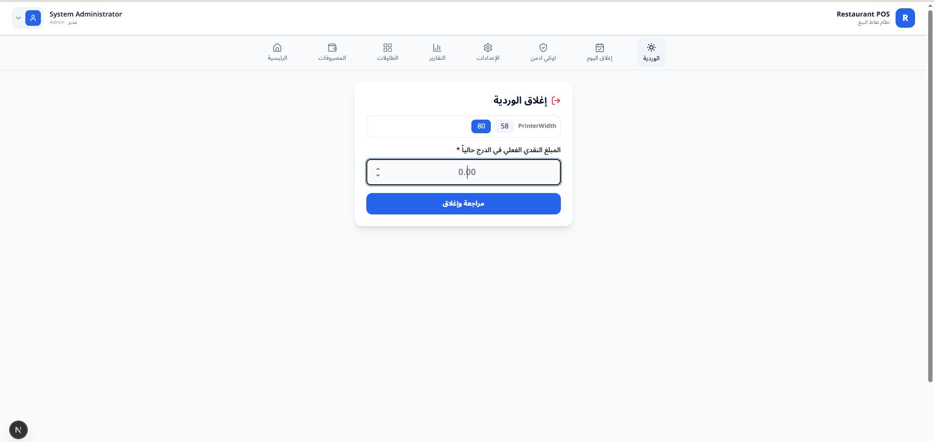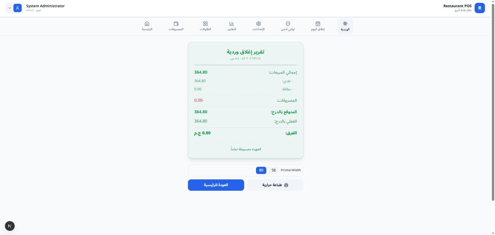 نظام كاشير داخلي وتيك أواي للمطاعم والكافيهات مع تحكم كامل بالطاولات والمنيو والتسعير وصلاحيات المستخدمين والطباعة الجرارية.