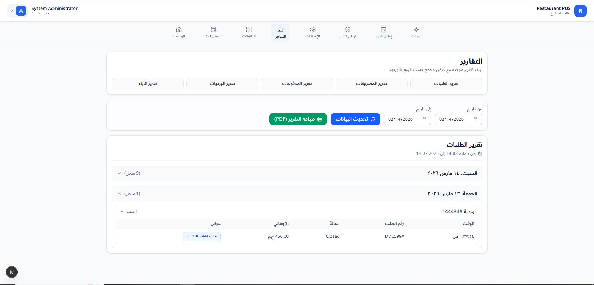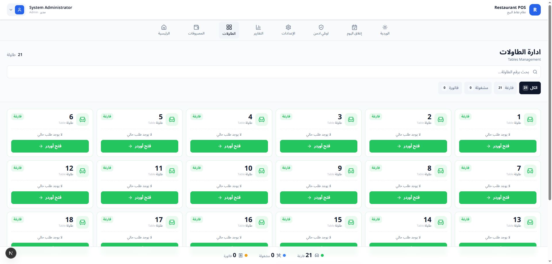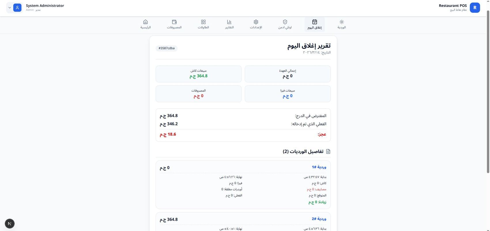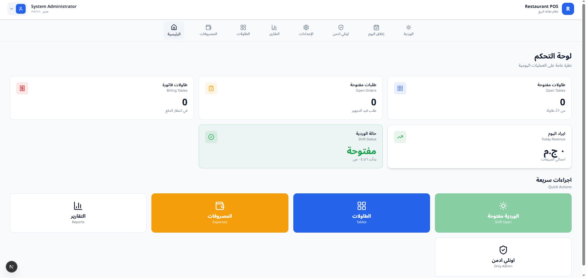 نظام كاشير داخلي وتيك أواي للمطاعم والكافيهات مع تحكم كامل بالطاولات والمنيو والتسعير وصلاحيات المستخدمين والطباعة الجرارية.